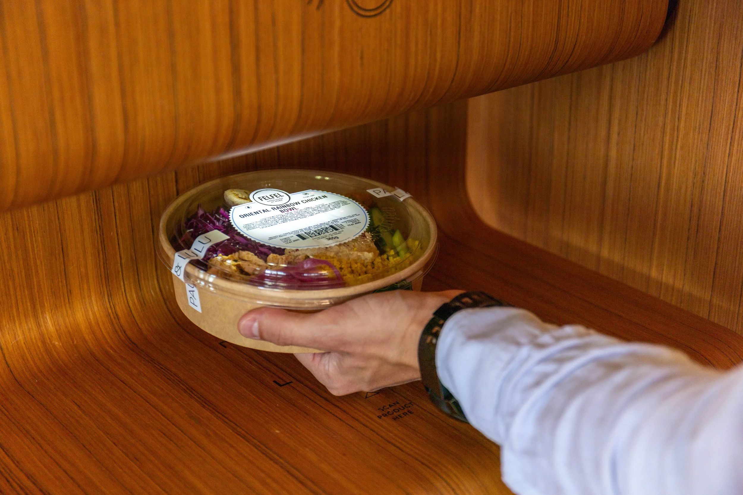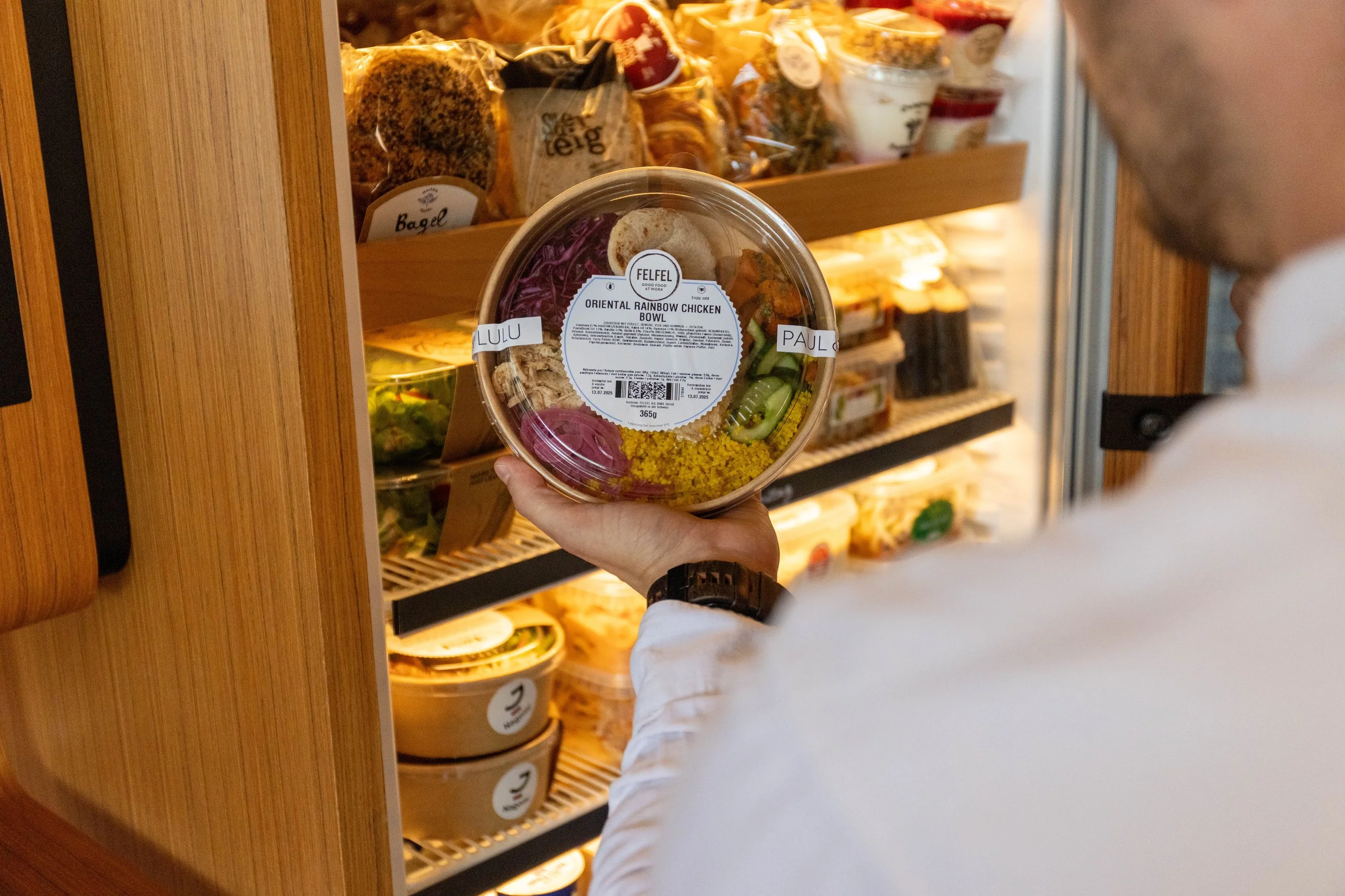 The FELFEL Fridge will recognize your account with the scanning of the barcode and the fridge unlocks. You may now open it.